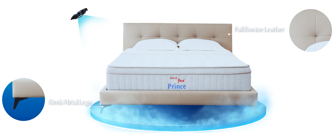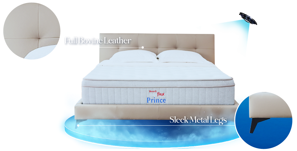 5′ FULL LEATHER BEDFRAME + MAXIFLEX PRINCE