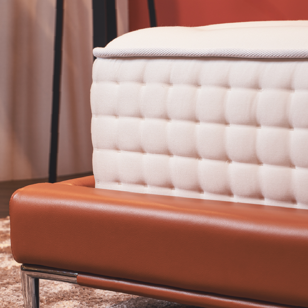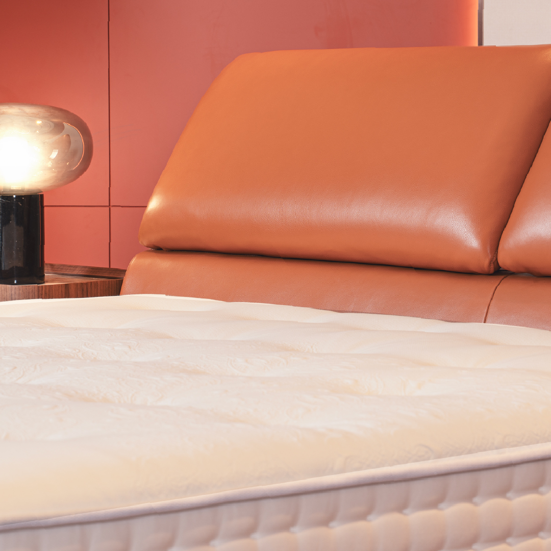 A full leather bed frame that brings a tailored, upholstered look into the bedroom. Designed to feel supportive and visually calm, it anchors the space while keeping comfort front and centre.
