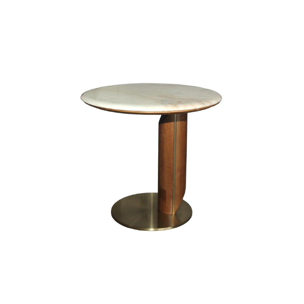 A refined side table that balances natural California marble with solid ash wood in walnut finish. Finished with a brass golden stainless steel plate, it adds subtle luxury without trying too hard.