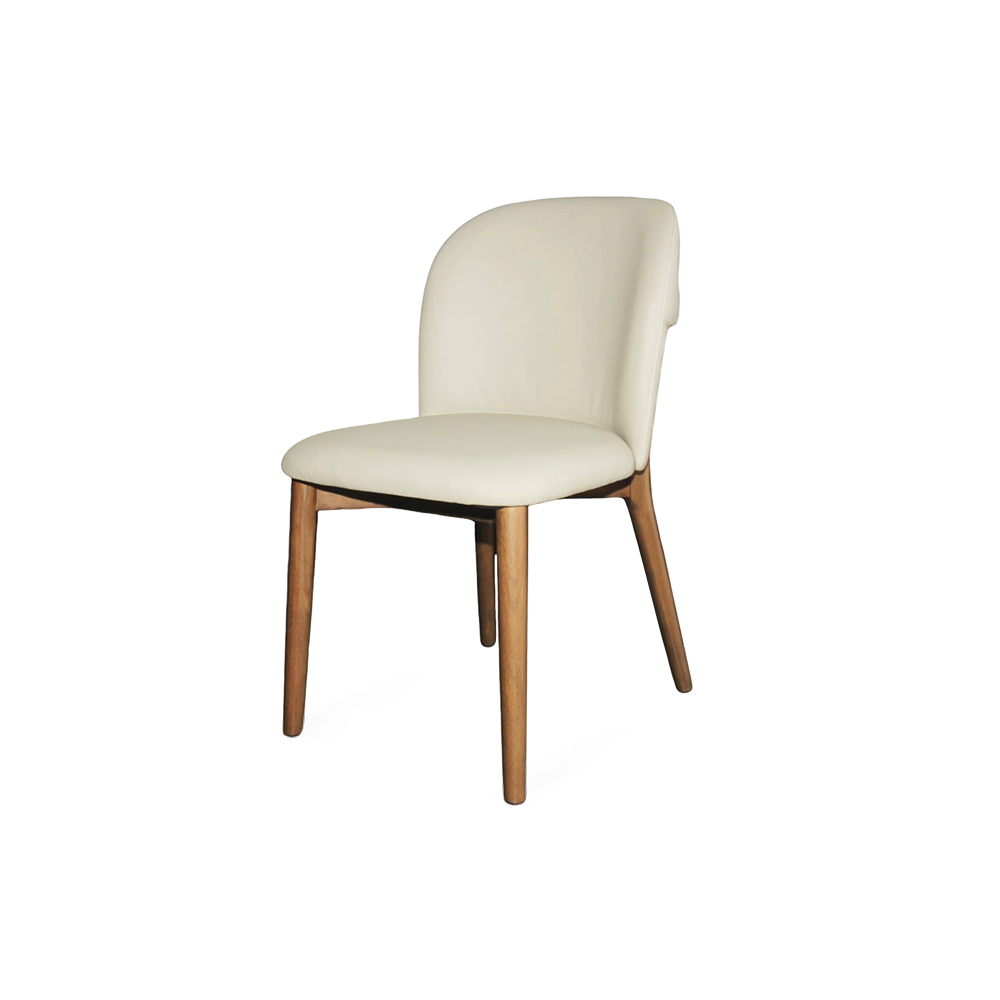 Striking a subtle contrast pose, this armchair combines soft beige leather with a darker leather base and solid walnut finished ash wood legs. Supportive and composed, it adds depth and character to modern living spaces.
