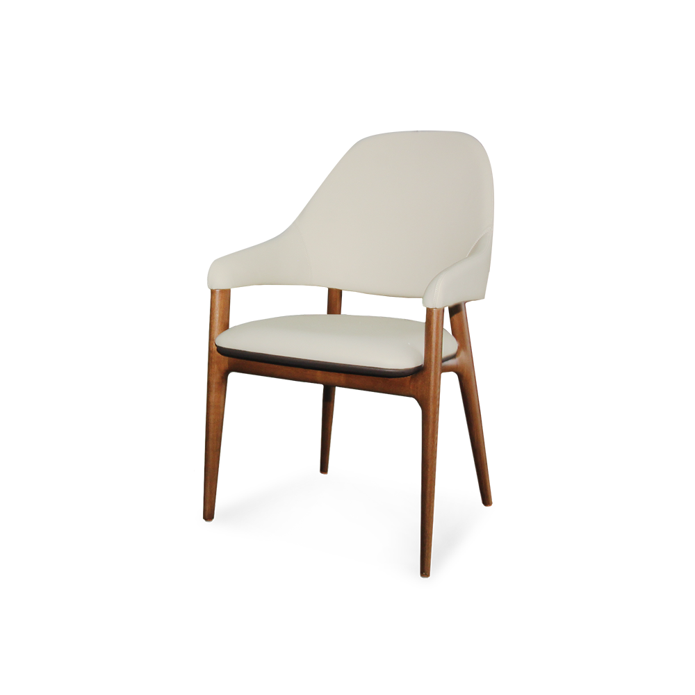 Striking a subtle contrast pose, this armchair combines soft beige leather with a darker leather base and solid walnut finished ash wood legs. Supportive and composed, it adds depth and character to modern living spaces.