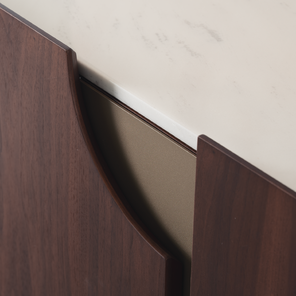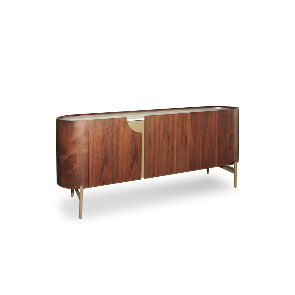 Sivec white marble meets walnut veneer in a sideboard that’s as practical as it is a statement of taste. Bronze-finished legs add just the right touch of warmth.
