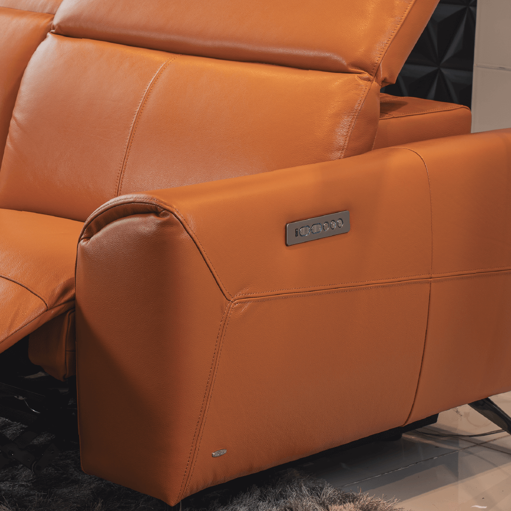 Defined by clean lines and smooth leather upholstery, this L-shape sofa with power-adjustable headrest lets you tailor your relaxation, combining ergonomic design with everyday ease.
