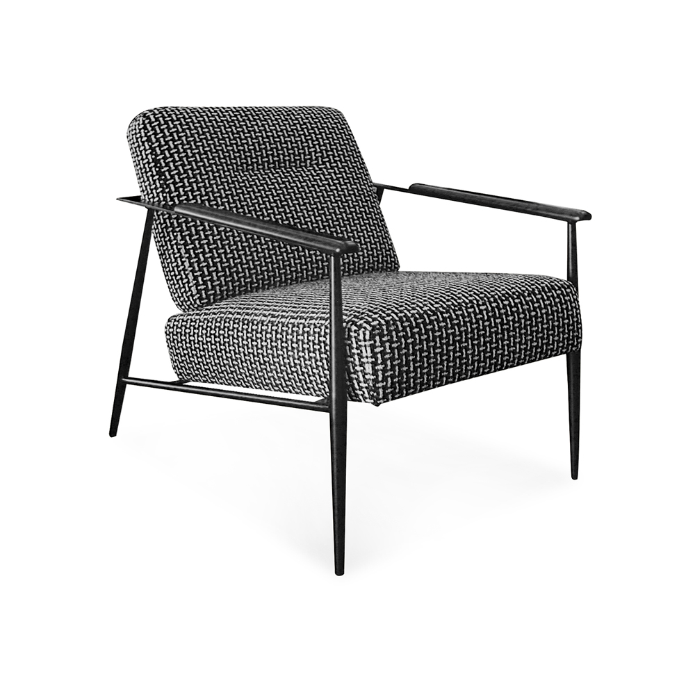 Low-slung comfort hits different when combined with contemporary style. This leisure chair pairs fabric softness with matte black armrests and slim metal legs for a look that’s effortlessly cozy yet urban.