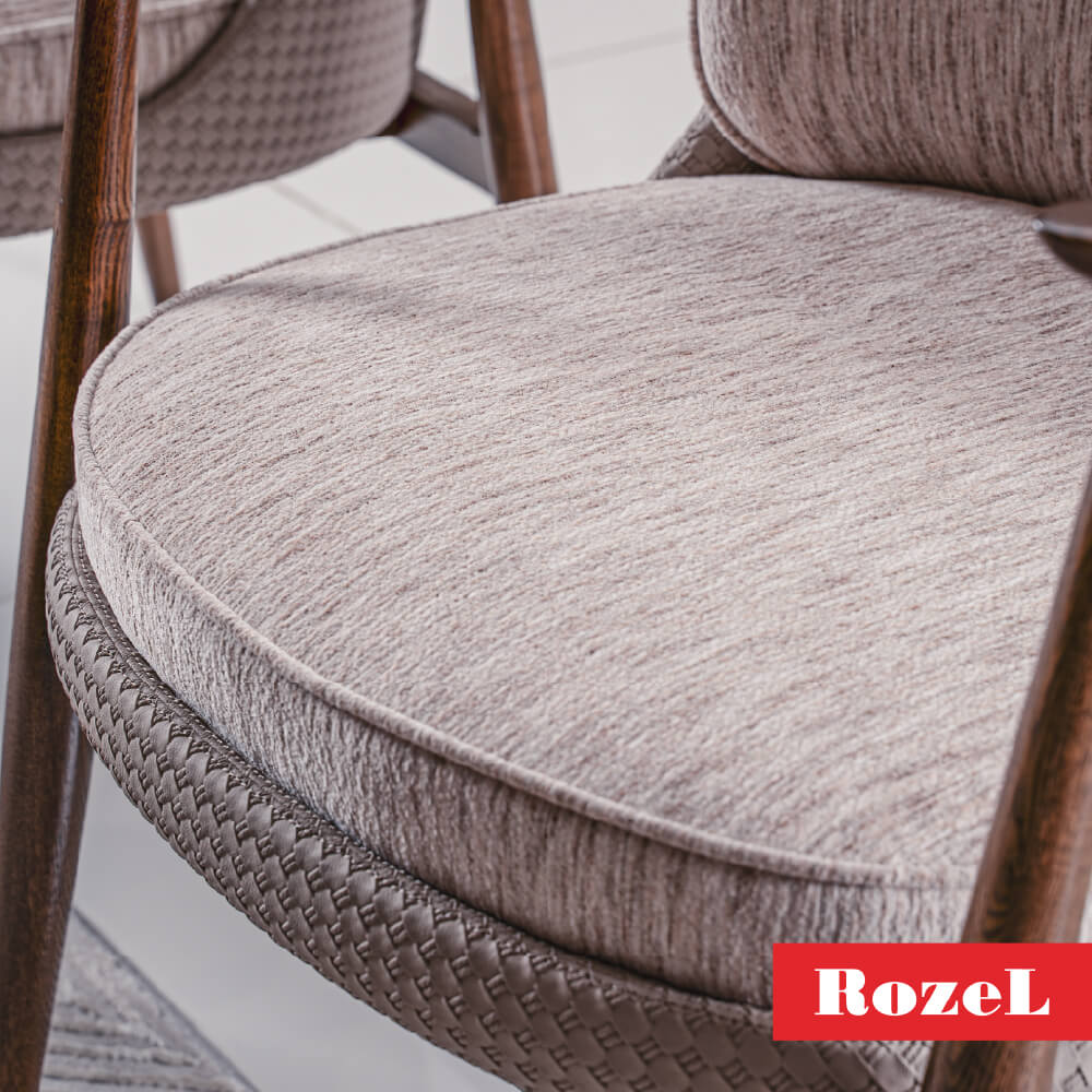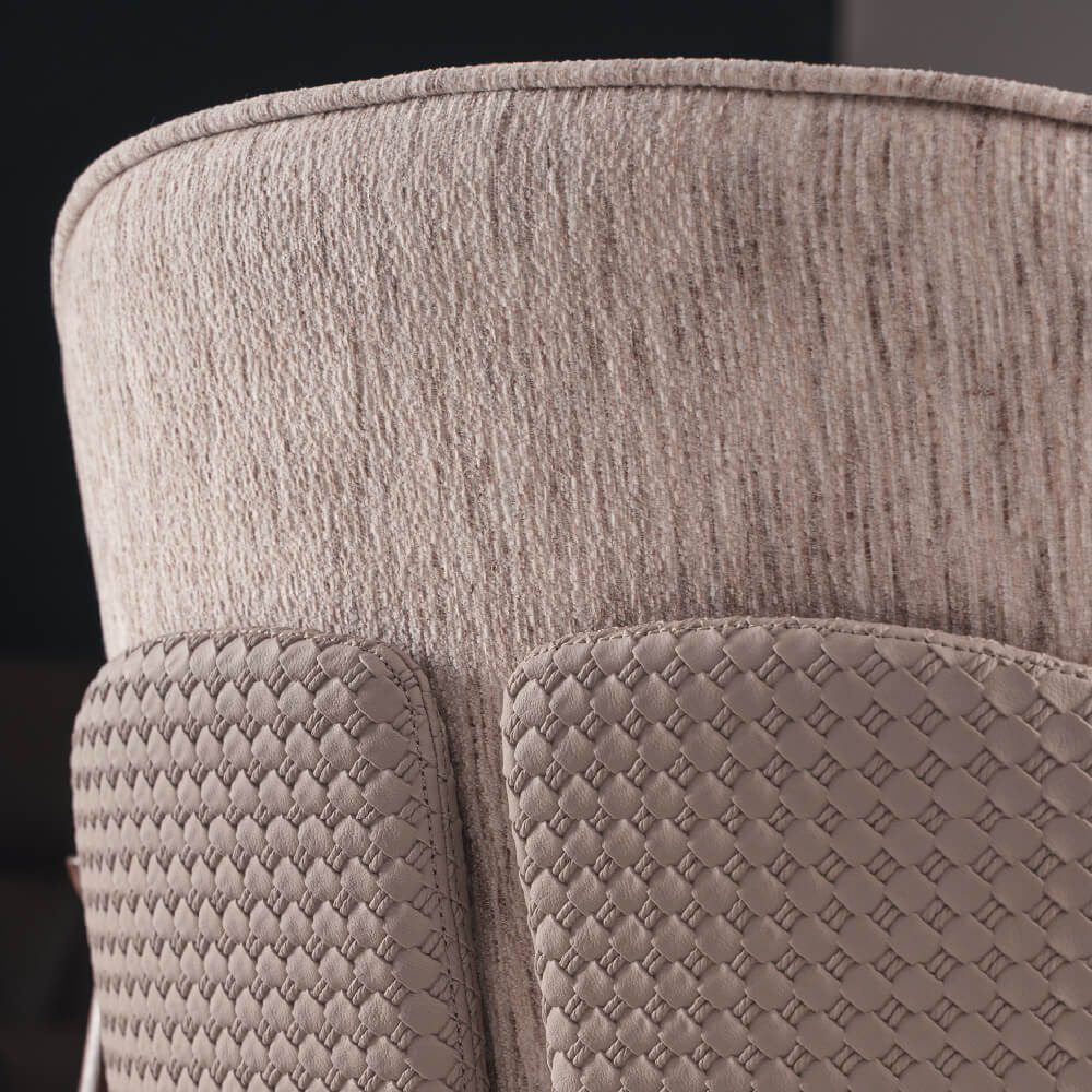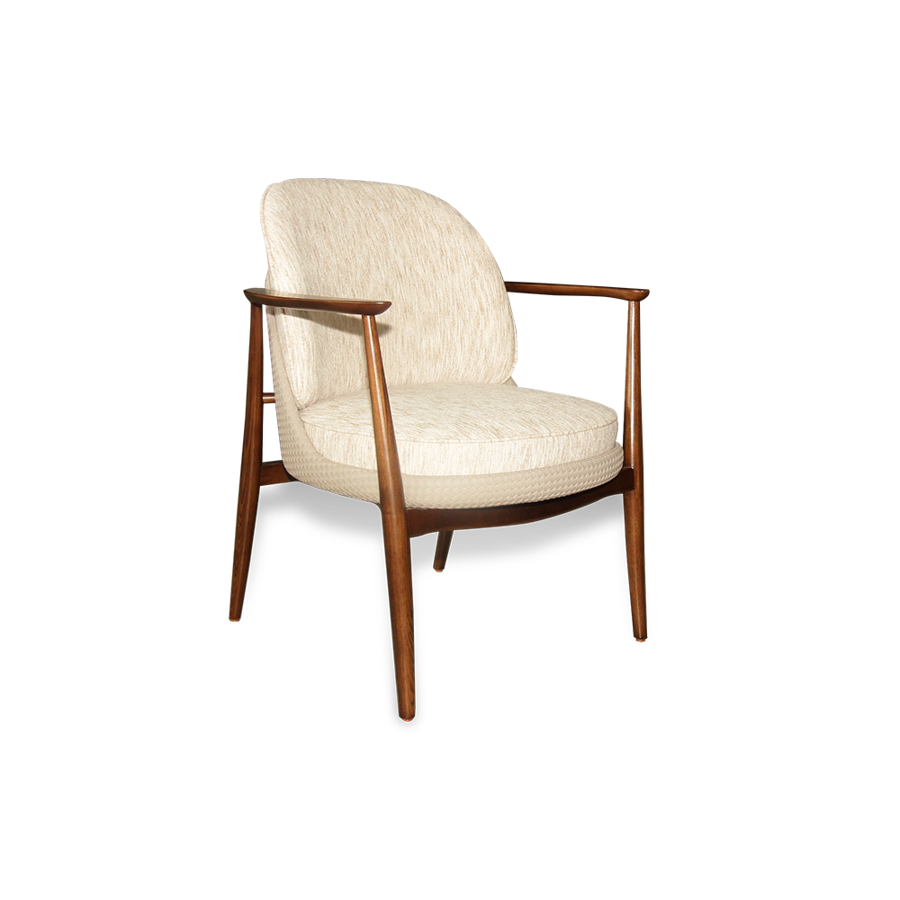 Made for relaxed moments, this leisure chair features comfortable fabric seating with a woven back detail and solid walnut finished ash wood legs. Its light form and supportive design make it ideal for casual lounging.