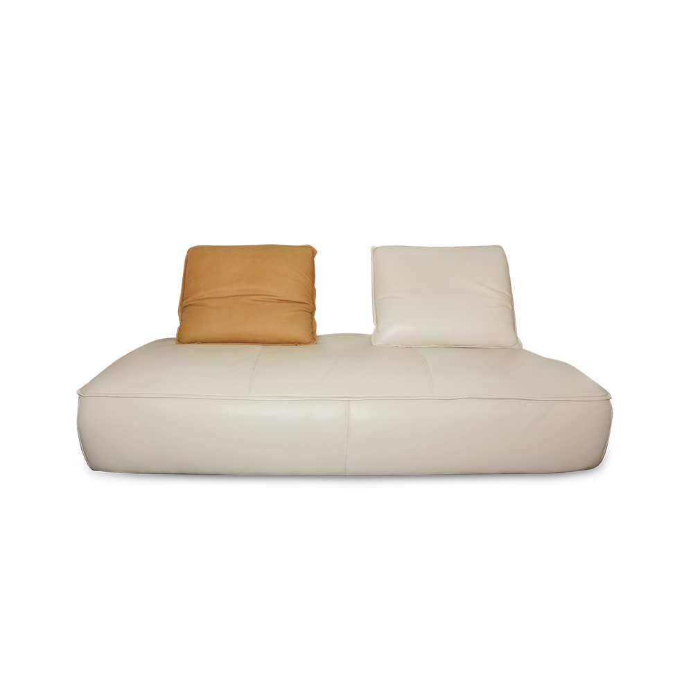 An architectural statement in comfort, this expansive 3-seater features a low-profile ‘daybed’ design upholstered in soft thick full leather. Defined by its rounded silhouette, it includes two fully adjustable backrest modules that allow you to customise your seating depth and angle, combining high-end aesthetics and modular flexibility.