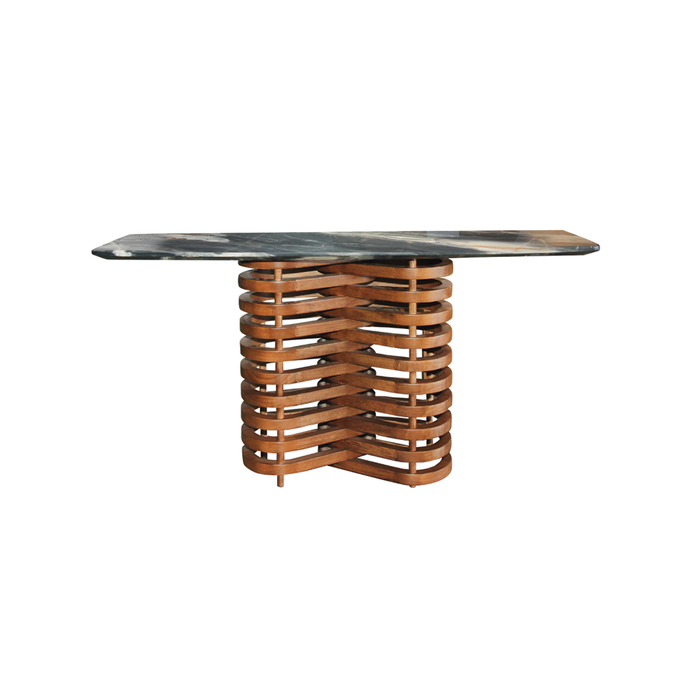 A refined accent for modern interiors, this console table features a rose gold marble top paired with solid ash wood in a warm walnut finish. Clean lines and balanced proportions make it an elegant addition to entryways or living spaces.